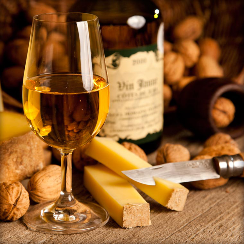 Tout commence à la vigne, qui possède un sol de marnes bleues, idéales pour vous offrir un Vin Jaune haut de gamme aux senteurs aromatiques multiples. C’est le cépage local, le Savagnin, qui donne toute la noblesse à ce roi des vins. Pour savourer ce Vin Jaune, il faut patienter longuement, son élevage étant très lent. Après six ans et trois mois passés dans nos fûts de chêne dans nos caves, sans ouillage, c'est-à-dire sans combler l’espace créé par l’évaporation naturelle du vin, un voile de levures se développe en surface et préserve le vin de l'oxydation en le privant de contact avec l'air ambiant. Puis vient le moment tant attendu de la percée du tonneau, et de la mise en bouteille dans ce flacon si particulier, unique, le Clavelin, dont la contenance de 62cl correspond à ce qui reste d’un litre de Vin Jaune au terme de sa vie en tonneau, la partie évaporée étant appelée la « Part des Anges ».